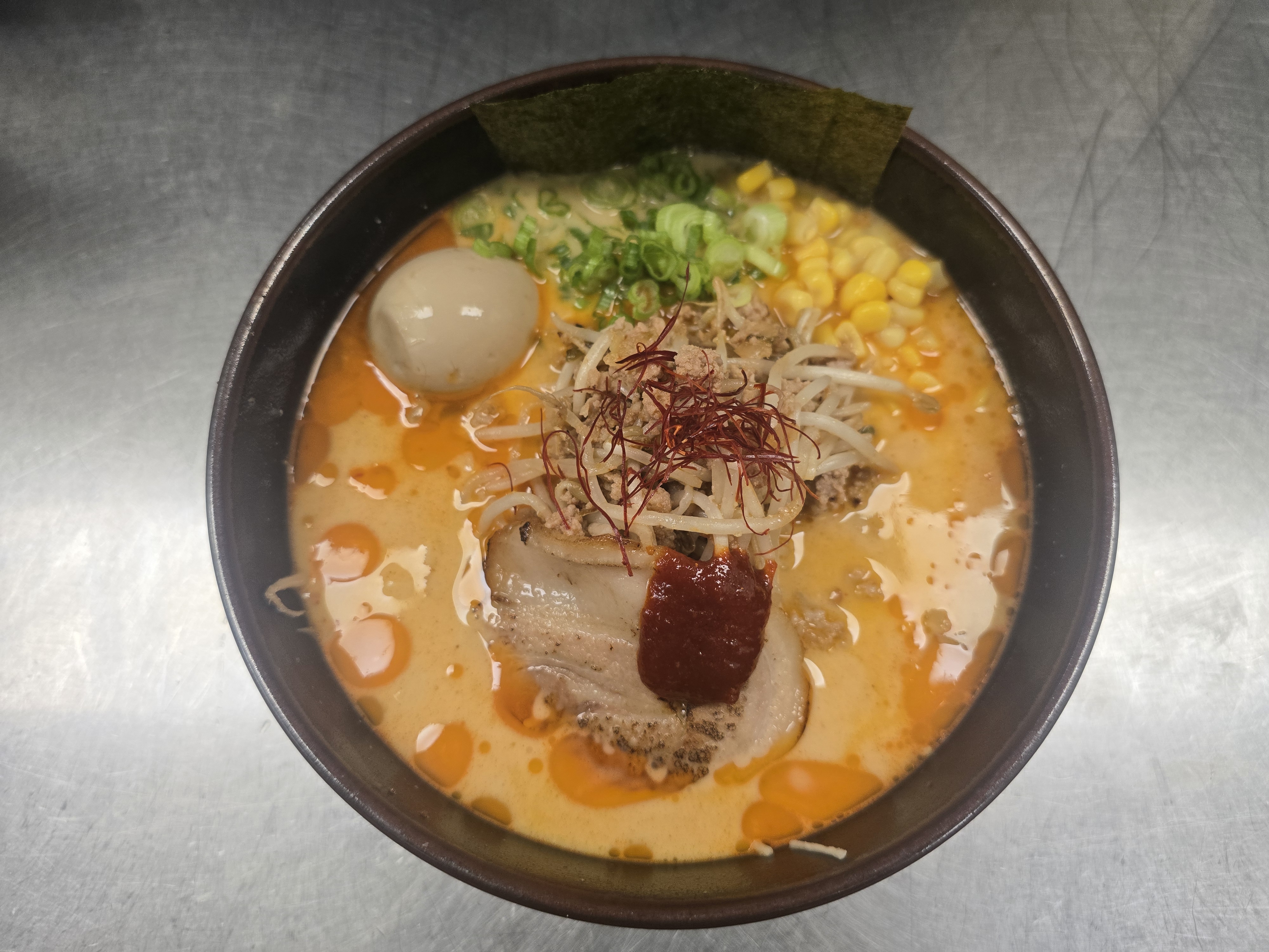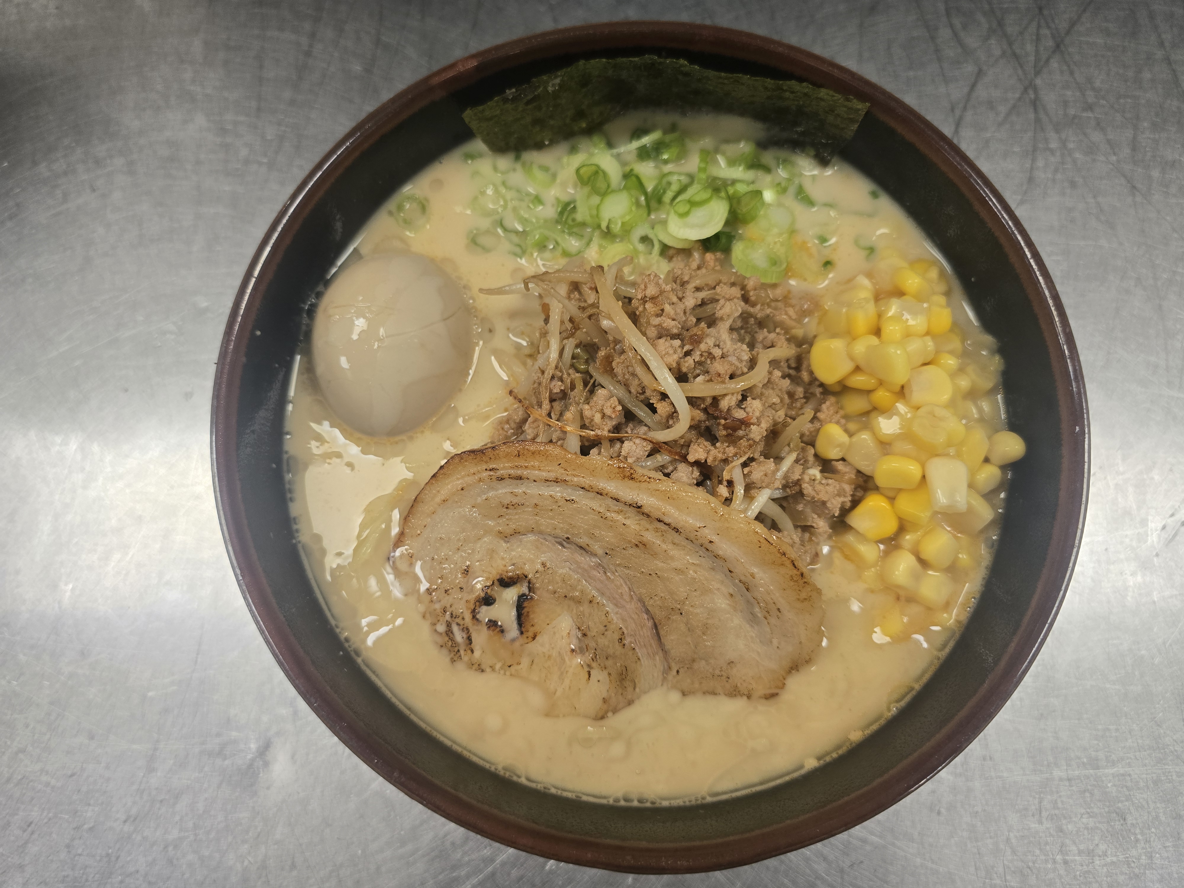 -Pork Bone Broth, Miso Blend, Goma Pork Beansprout, Corn, and Ajitama Egg