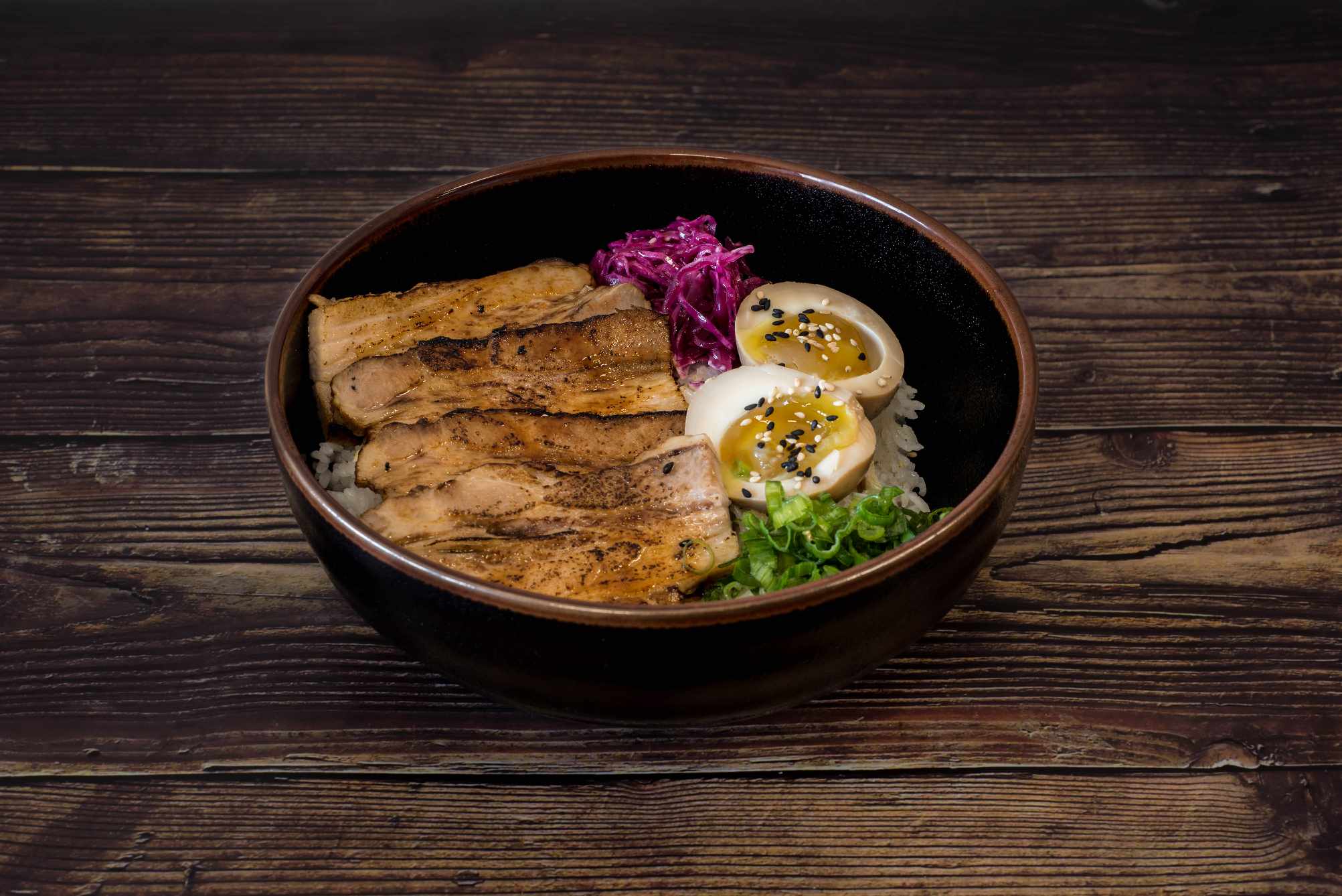 -Soy Braised Pork Belly, Ajitama and Red Cabbage Slaw