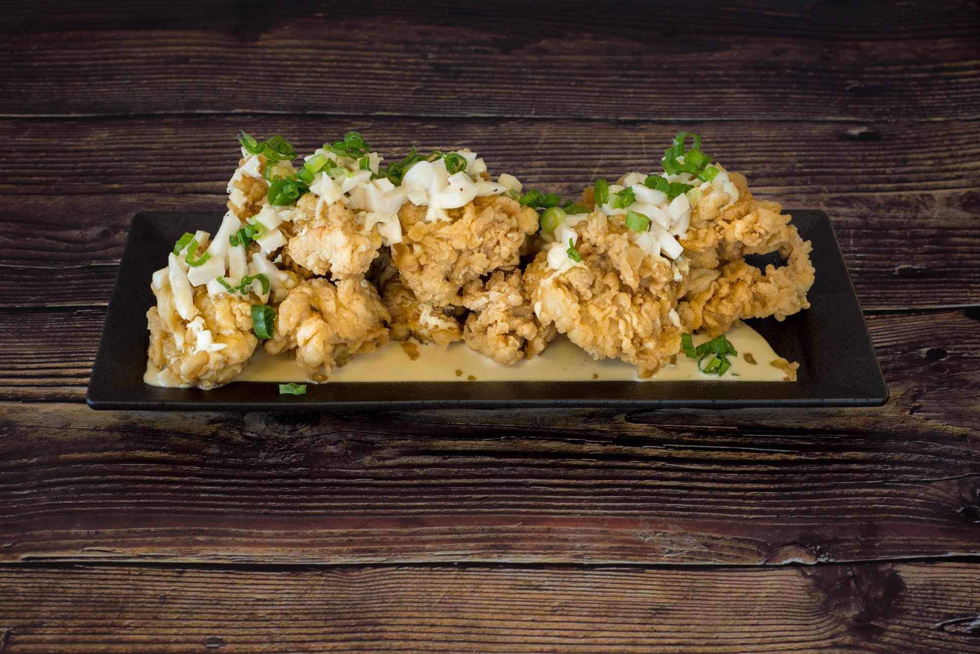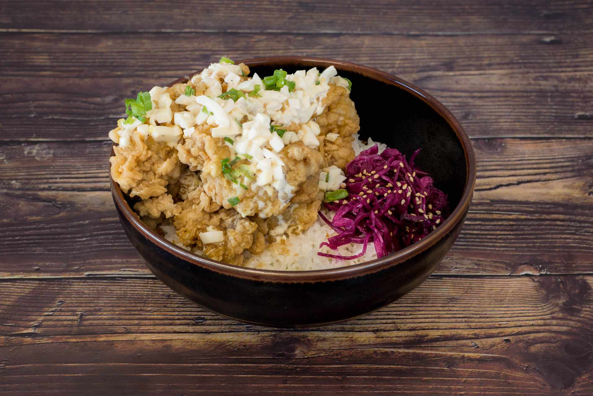 -Deep Fried Chicken thigh Drizzle With Sweet Soy Sauce Then Topped With Tartar Sauce